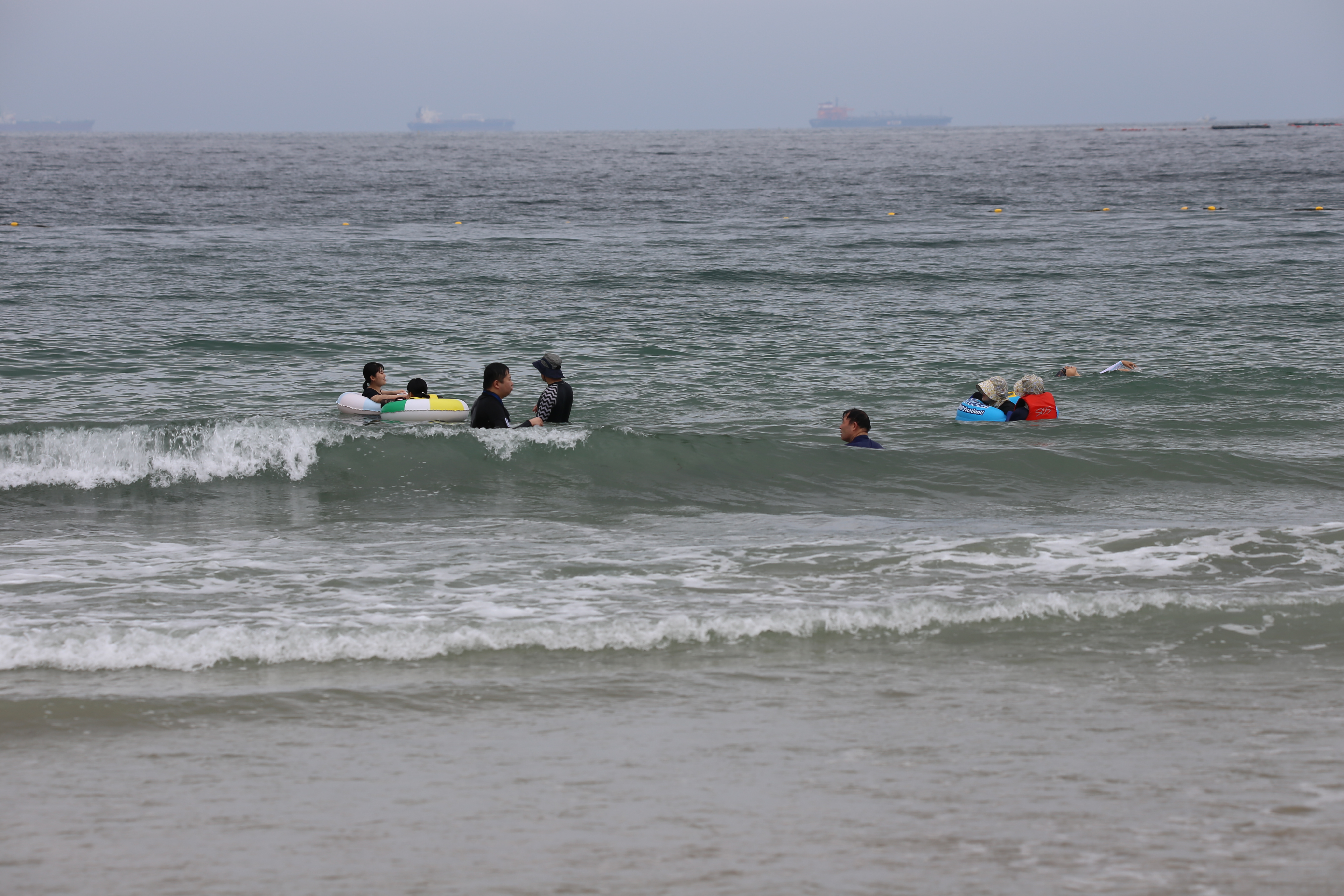 튜브를 잡고 웃으며 대화를 나누는 가족들, 구명조끼를 입고 파도를 타는 연인, 그리고 홀로 바다에 몸을 맡긴 이까지 — 저마다의 방식으로 여유를 즐기는 모습이다.